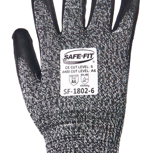 Guante resistente al corte nivel A6. Tuffalene® UHMWPE color blanco con negro, Cal.10, reforzado con hilos de acero, con recubrimiento de nitrilo espumoso en palma y dedos. Sin costuras.